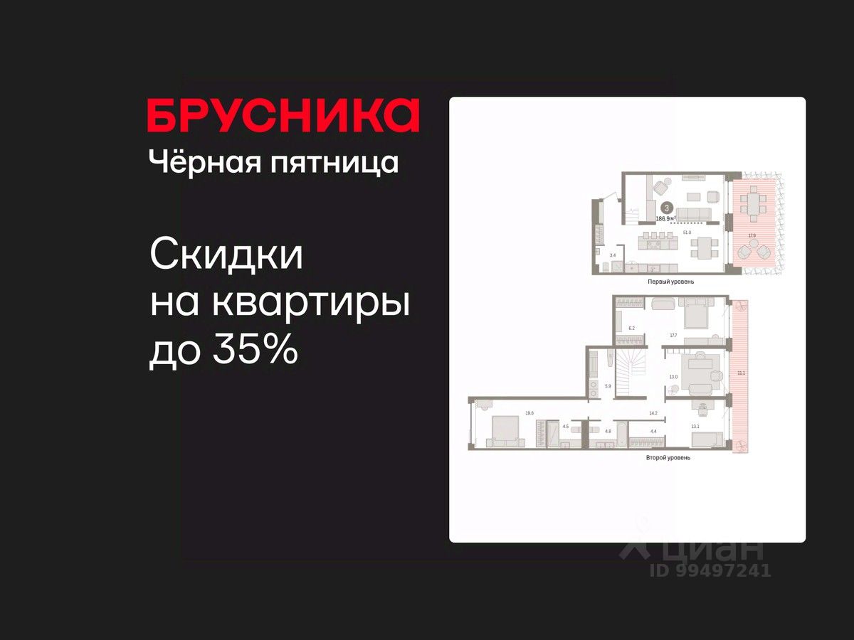 Продается трехкомнатная квартира с предчистовой отделкой в ЖК "Новин" на 1 этаже. Двухуровневая квартира, планировка позволяет организовать индивидуальное пространство для каждого члена семьи. Общая площадь: 186.93 кв.м., жилая: 50.6 кв.м., площадь просторной кухни-гостиной: 51 кв.м. Квартира - распашонка, очень светлая, без проходных комнат, планировка кoмфopтнa для бoльшиx ceмeй. В квартире два балкона, три совмещенных санузла. Терраса размером 17.9 кв.м. представляет собой роскошную зону отдыха для проведение вечеров в кругу семьи и друзей или организация вечеринок. Высота потолков 2.74 м.