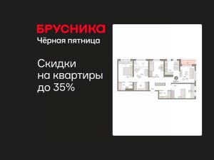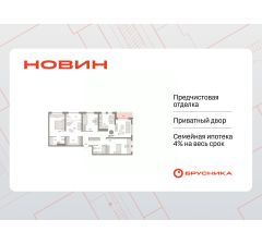 Четырехкомнатная квартира в квартале "Новин". Особенности планировки: гардеробная, тёплая лоджия, лоджия, разнесённые спальни, предчистовая отделка, мастер-спальня.