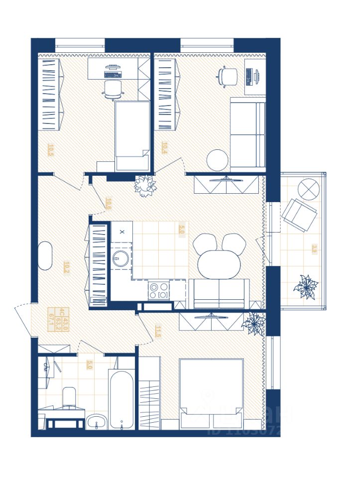 ДОМ ГОТОВ. КЛЮЧИ В ДЕНЬ СДЕЛКИ! Продается уютная трехкомнатная видовая квартира 361 площадью 63,7 кв.м. с большой лоджией и кухней-гостиной площадью 16,2 кв.м., тремя комнатами площадью 11,4 м2, 10,4 м2 и 10,3 м2, в жилом комплексе "Набережный". Общая площадь квартиры — 63,7 кв.м., жилая — 43,3 кв.м. Это идеальное место для комфортной жизни вашей семьи!