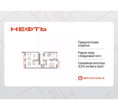 Квартира с кухней-гостиной и двумя спальнями в квартале "Нефть". Особенности планировки: балкон, вид во двор, второй санузел, гардеробная, предчистовая отделка, терраса на крыше.