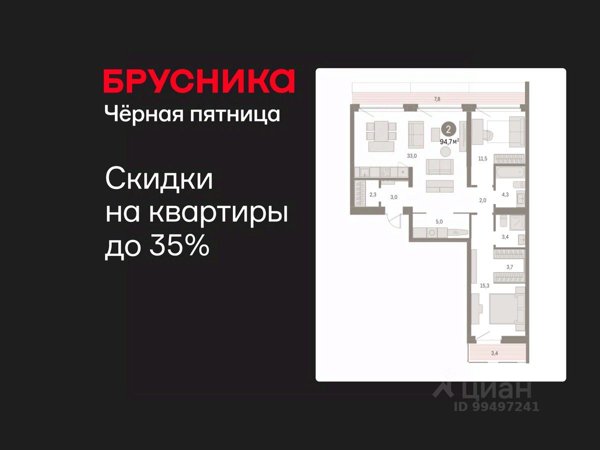 Квартира с кухней-гостиной и двумя спальнями в квартале "Нефть". Особенности планировки: гардеробная, вид во двор, разнесённые спальни, предчистовая отделка, мастер-спальня, постирочная, балкон, терраса на крыше.