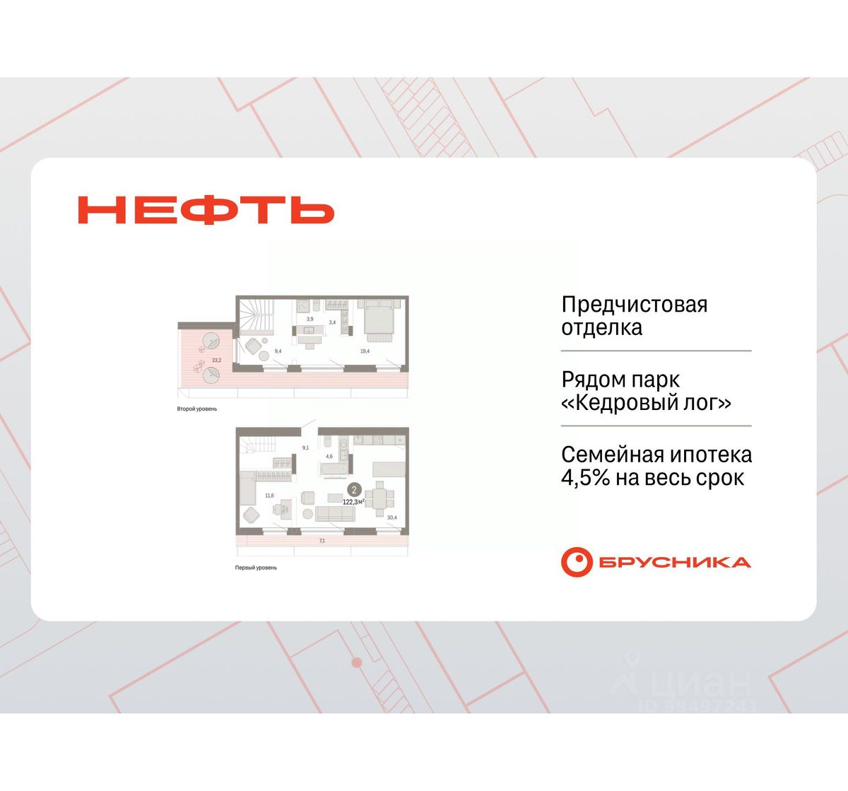 2-комн. квартира от застройщика с предчистовой отделкой в ЖК "Нефть" на 7 этаже. Двухуровневая квартира, большая площадь и простор для воплощения дизайнерских идей. Общая площадь: 122.3 кв.м., жилая: 31.2 кв.м., площадь просторной кухни-гостиной: 30.4 кв.м. Квартира угловая, очень светлая, естественная вентиляция при открытии окон. В квартире два балкона, два совмещенных санузла. Терраса представляет собой роскошную зону отдыха, где вы на свой вкус можете создать атмосферу комфорта и уюта. Высота потолков 2.7 м.