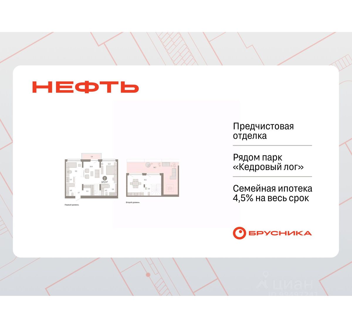 Продается 2-комн. квартира с предчистовой отделкой в ЖК "Нефть" на 7 этаже. 2-уровневая квартира, большое количество свободного пространства дает возможность воплотить в жизнь свои дизайнерские идеи. Общая площадь: 127.2 кв.м., жилая: 34.1 кв.м., площадь просторной кухни-гостиной: 19.1 кв.м. Комнаты изолированные, все окна выходят на одну сторону. В квартире два балкона, два совмещенных санузла. Наличие в квартире террасы открывает возможность для создания зон отдыха в кругу семьи и друзей. Высота потолков 2.7 м.
