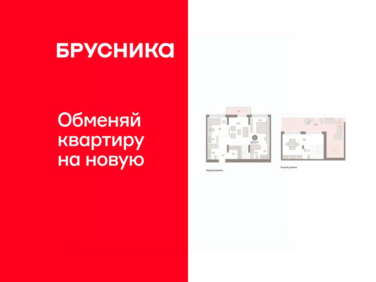 Двухуровневая квартира с кухней-гостиной и двумя спальнями в квартале "Нефть". Особенности планировки: двухуровневая, свободная планировка.