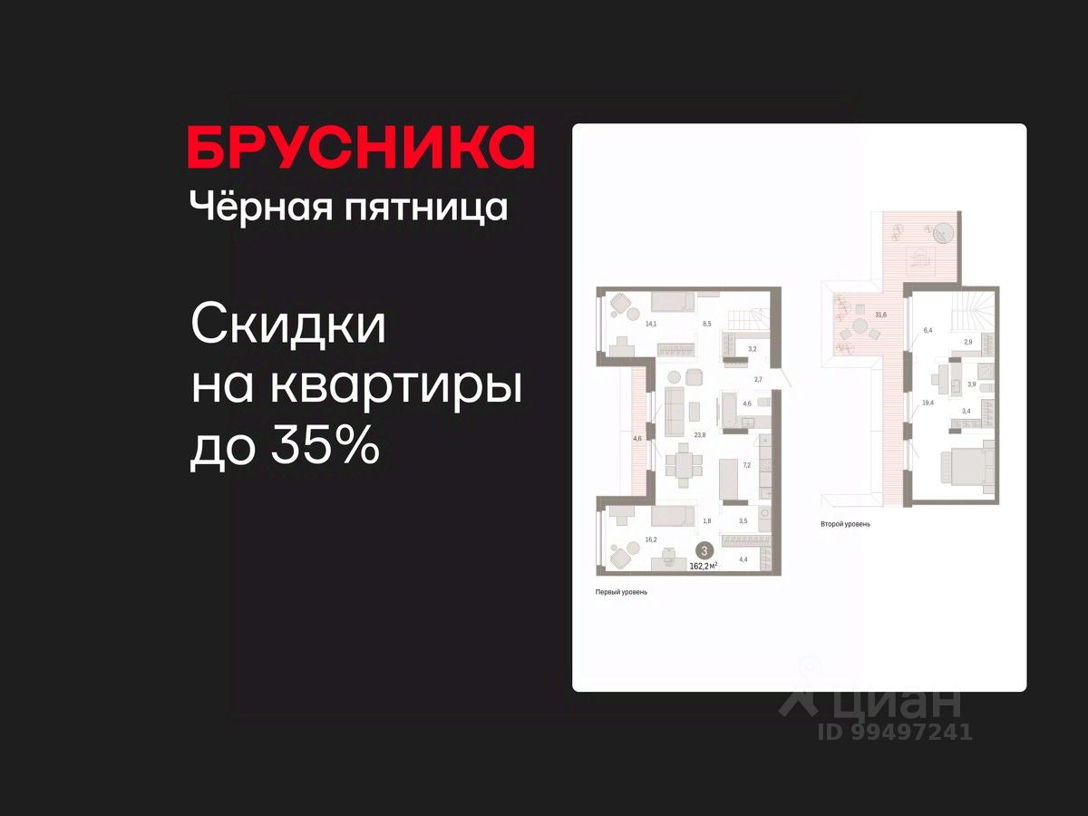 Двухуровневая квартира с кухней-гостиной и тремя спальнями в квартале "Нефть". Особенности планировки: двухуровневая, свободная планировка, терраса на крыше.