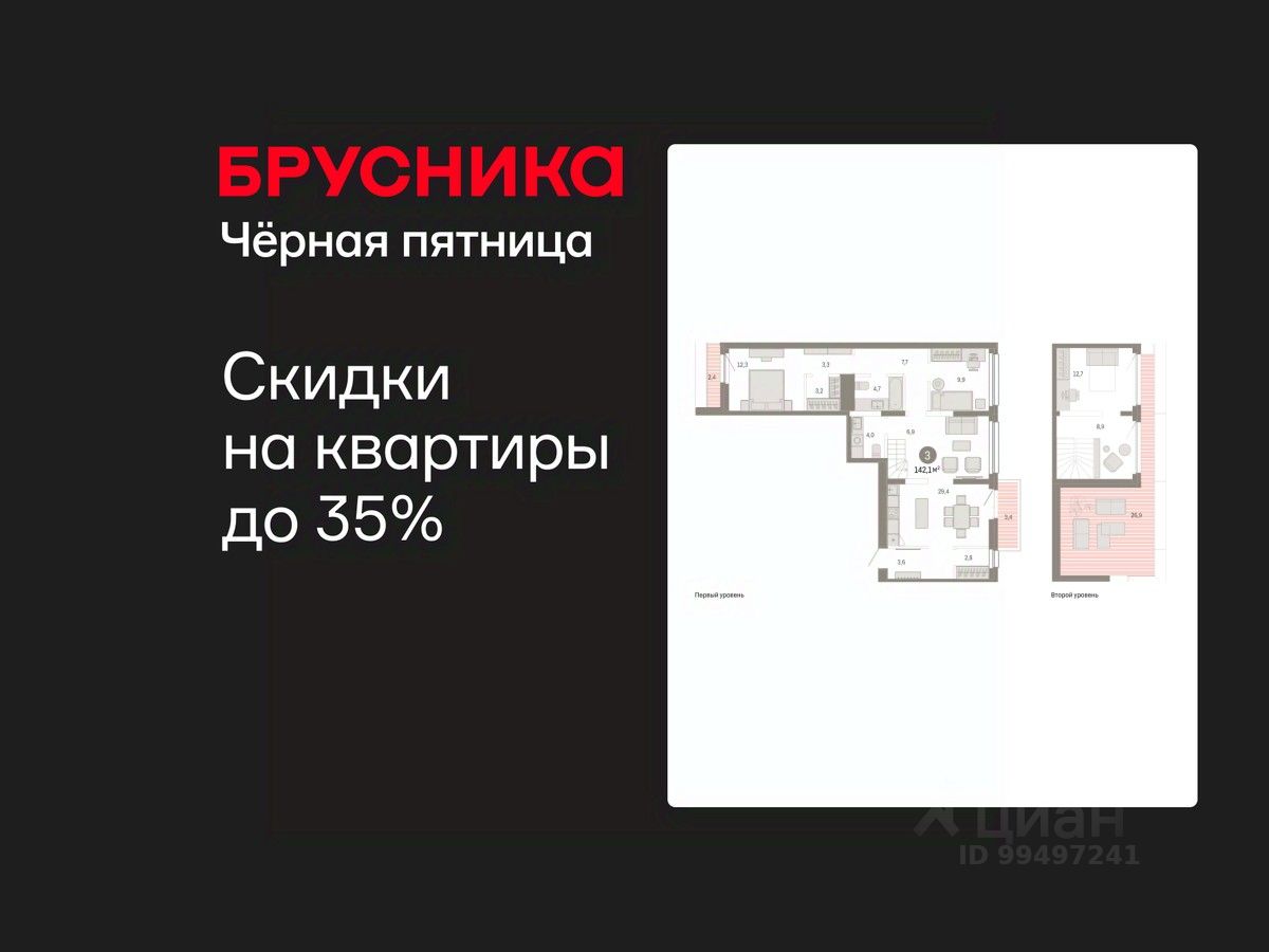 Двухуровневая квартира с кухней-гостиной и тремя спальнями в квартале "Нефть". Особенности планировки: двухуровневая, вид во двор, свободная планировка, балкон, терраса на крыше.