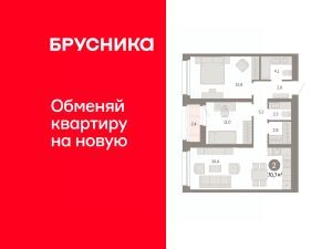 Квартира с кухней-гостиной и двумя спальнями в квартале "Нефть". Особенности планировки: вид во двор, второй санузел, гардеробная, лоджия, предчистовая отделка.