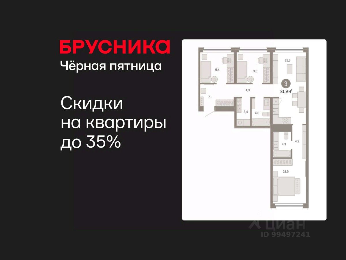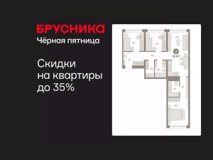 Квартира с кухней-гостиной и тремя спальнями в квартале "Нефть". Особенности планировки: вид во двор, разнесённые спальни, предчистовая отделка, мастер-спальня, постирочная.