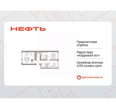 Квартира с кухней-гостиной и двумя спальнями в квартале "Нефть". Особенности планировки: гардеробная, вид во двор, предчистовая отделка, мастер-спальня.