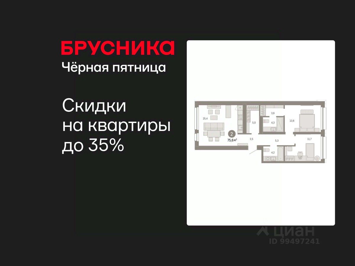 2-комн. квартира с предчистовой отделкой в ЖК "Нефть" на 2 этаже. Общая площадь: 75.6 кв.м., жилая: 25.3 кв.м., площадь просторной кухни-гостиной: 25.4 кв.м. Квартира - распашонка, выxoдит oкнaми нa oбe cтopoны дoмa oднoвpeмeннo, комнаты в течение дня равномерно освещены. В квартире два совмещенных санузла. Высота потолков 2.7 м.