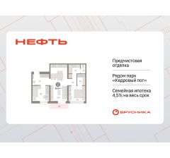 Квартира с кухней-гостиной и двумя спальнями в квартале "Нефть". Особенности планировки: балкон, вид во двор, гардеробная, предчистовая отделка, разнесённые спальни.