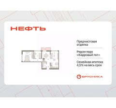 Квартира с кухней-гостиной и двумя спальнями в квартале "Нефть". Особенности планировки: разнесённые спальни, предчистовая отделка, балкон.
