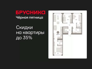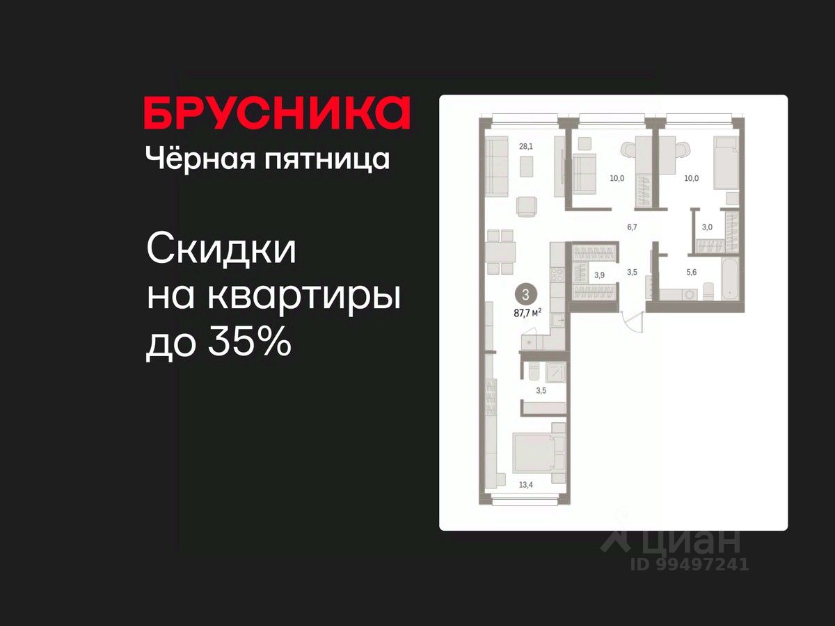 Квартира с кухней-гостиной и тремя спальнями в квартале "Нефть". Особенности планировки: гардеробная, вид во двор, разнесённые спальни, предчистовая отделка, мастер-спальня.