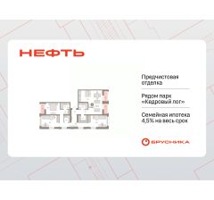 Квартира с кухней-гостиной и тремя спальнями в квартале "Нефть". Особенности планировки: окно в коридоре, гардеробная, окна в пол, вид во двор, лоджия, разнесённые спальни, предчистовая отделка, мастер-спальня, постирочная.