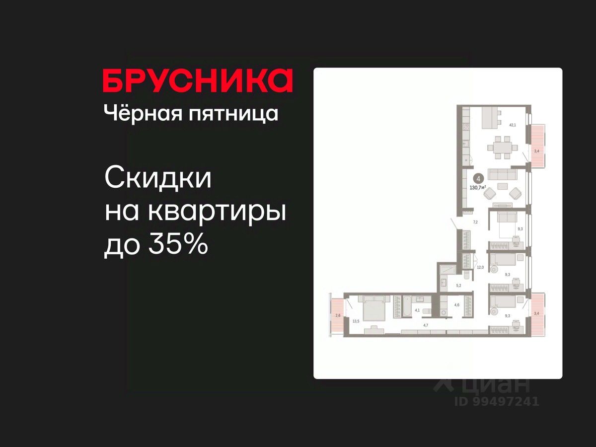 Квартира с кухней-гостиной и четырьмя спальнями в квартале "Нефть". Особенности планировки: рабочий кабинет, вид во двор, лоджия, разнесённые спальни, предчистовая отделка, мастер-спальня, постирочная, балкон.