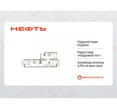Квартира с кухней-гостиной и двумя спальнями в квартале "Нефть". Особенности планировки: вид во двор, разнесённые спальни, предчистовая отделка, мастер-спальня, балкон.