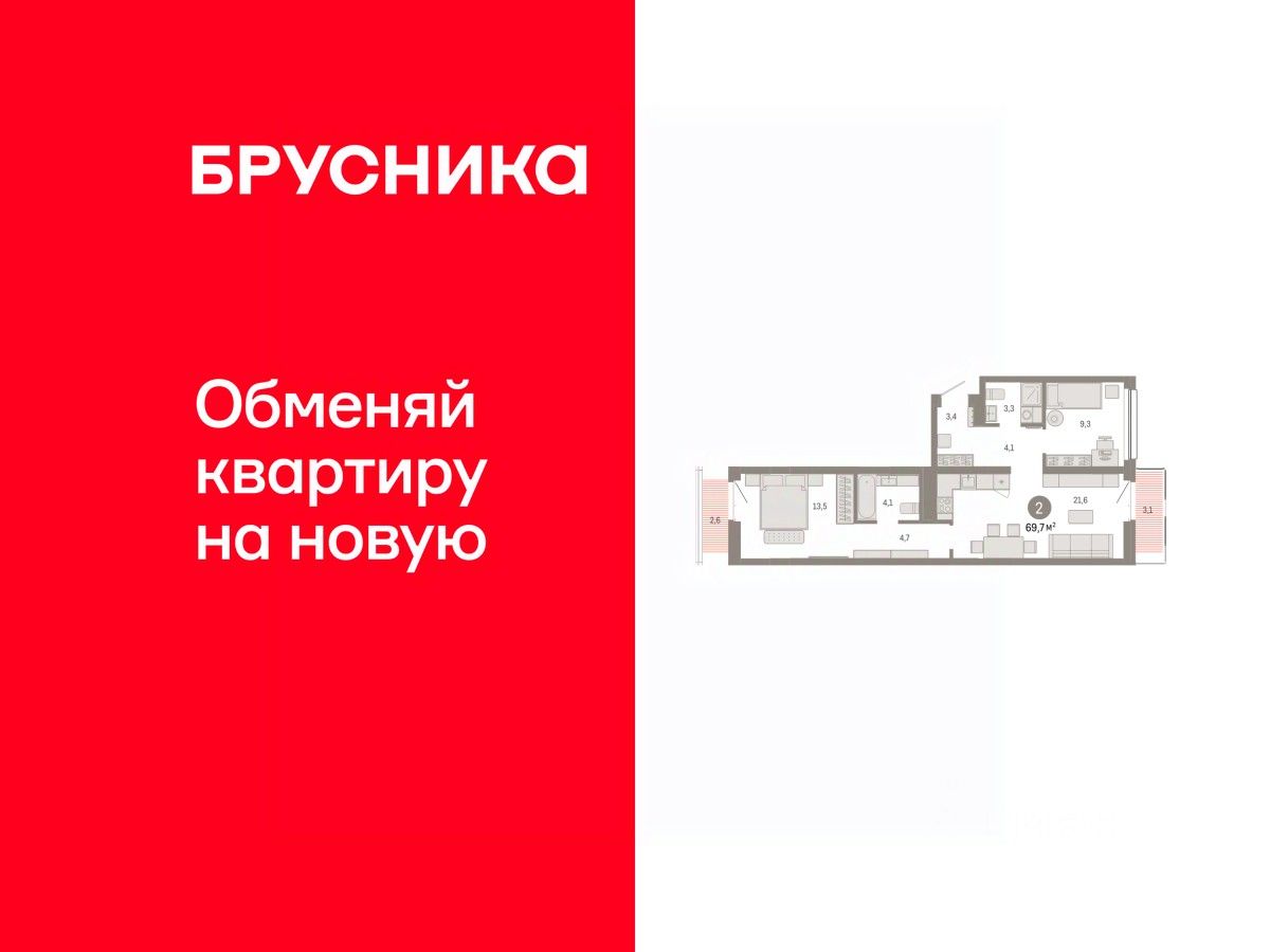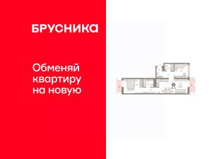 Квартира с кухней-гостиной и двумя спальнями в квартале "Нефть". Особенности планировки: балкон, предчистовая отделка, разнесённые спальни.