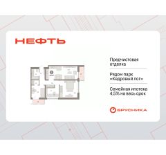 Квартира с кухней-гостиной и двумя спальнями в квартале "Нефть". Особенности планировки: гардеробная, рабочий кабинет, разнесённые спальни, предчистовая отделка, балкон.
