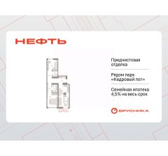 Квартира с кухней-гостиной и двумя спальнями в квартале "Нефть". Особенности планировки: балкон, вид во двор, мастер-спальня, предчистовая отделка, разнесённые спальни.