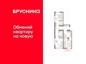 Квартира с кухней-гостиной и двумя спальнями в квартале "Нефть". Особенности планировки: балкон, вид во двор, мастер-спальня, предчистовая отделка, разнесённые спальни.