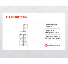 Квартира с кухней-гостиной и двумя спальнями в квартале "Нефть". Особенности планировки: вид во двор, лоджия, разнесённые спальни, предчистовая отделка, мастер-спальня.