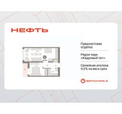 Квартира с кухней-гостиной и одной спальней в квартале "Нефть". Особенности планировки: балкон, предчистовая отделка.