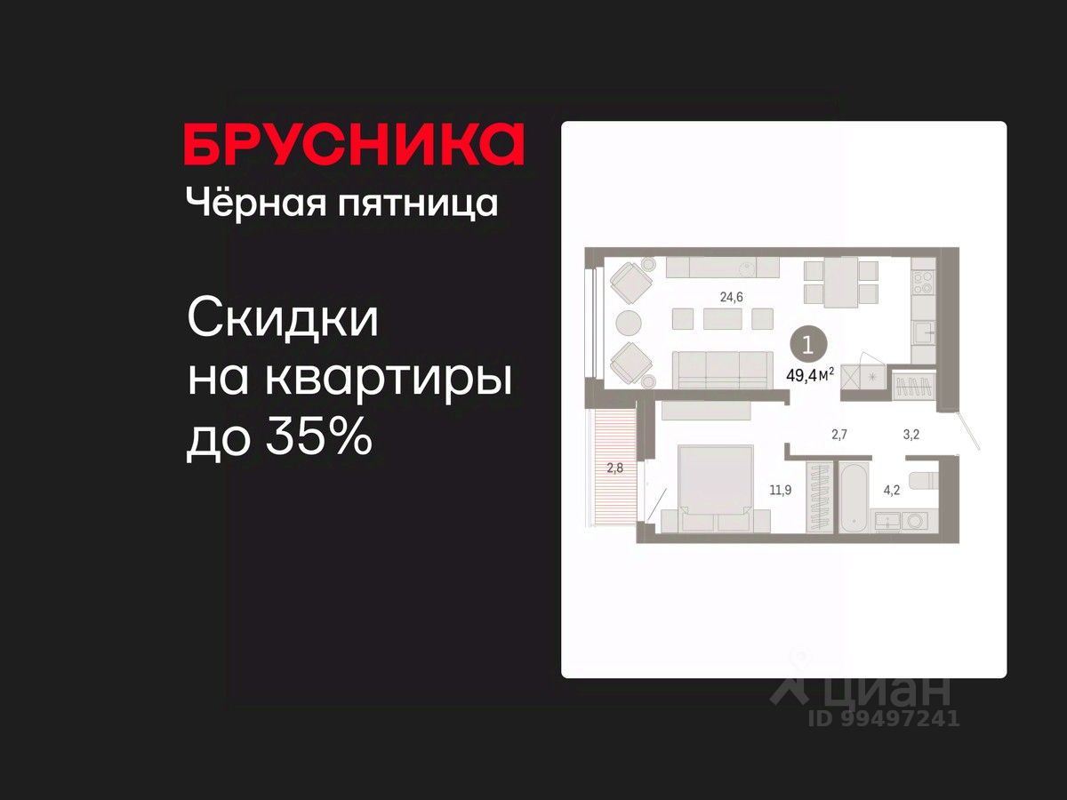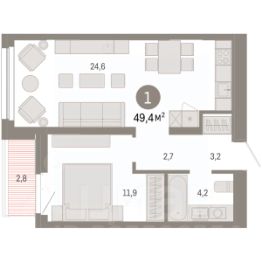 1-комн. квартира с предчистовой отделкой в ЖК "Нефть" на 6 этаже. Общая площадь: 49.4 кв.м., жилая: 11.9 кв.м., площадь просторной кухни-гостиной: 24.6 кв.м. Все окна выходят на одну сторону. В квартире одна лоджия, один совмещенный санузел. Высота потолков 2.7 м.