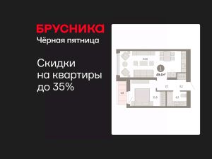 Квартира с кухней-гостиной и одной спальней в квартале "Нефть". Особенности планировки: предчистовая отделка, балкон.