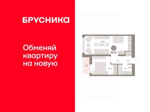 Квартира с кухней-гостиной и одной спальней в квартале "Нефть". Особенности планировки: предчистовая отделка.
