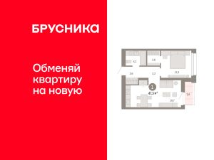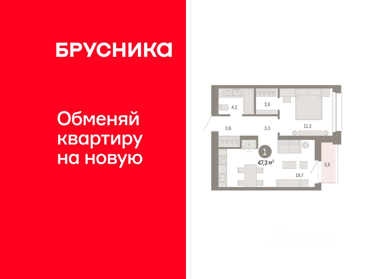 Квартира с кухней-гостиной и одной спальней в квартале "Нефть". Особенности планировки: предчистовая отделка.