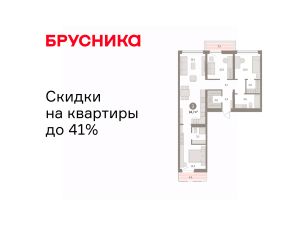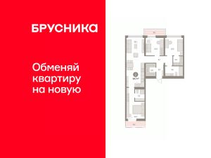 Квартира с кухней-гостиной и тремя спальнями в квартале "Нефть". Особенности планировки: мастер-спальня, предчистовая отделка.