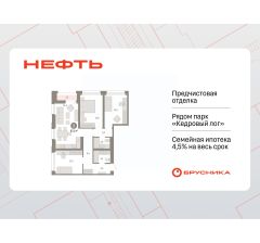 Квартира с кухней-гостиной и тремя спальнями в квартале "Нефть". Особенности планировки: второй санузел, окна в пол, лоджия, разнесённые спальни, предчистовая отделка.