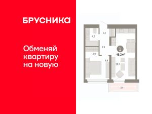 Квартира с кухней-гостиной и одной спальней в квартале "Нефть". Особенности планировки: балкон, предчистовая отделка.