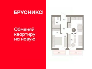 Квартира с кухней-гостиной и одной спальней в квартале "Нефть". Особенности планировки: балкон, предчистовая отделка.