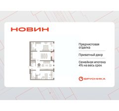 Квартира с кухней-гостиной и двумя спальнями в квартале "Новин". Особенности планировки: гардеробная, лоджия, мастер-спальня, предчистовая отделка, разнесённые спальни.