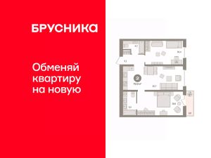 Квартира с кухней-гостиной и двумя спальнями в квартале "Новин". Особенности планировки: балкон, предчистовая отделка, разнесённые спальни.