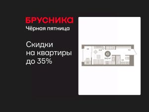 1-комн. студия от застройщика с предчистовой отделкой в ЖК "Новин" на 11 этаже. Общая площадь: 24.55 кв.м., площадь гостиной 12.8 кв.м., из которых 5 кв.м. выделено под кухонную зону. Все окна выходят на одну сторону. В квартире одна лоджия, один совмещенный санузел. Высота потолков 2.7 м.