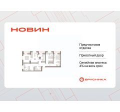 Квартира с кухней-гостиной и тремя спальнями в квартале "Новин". Особенности планировки: гардеробная, лоджия, разнесённые спальни, предчистовая отделка, мастер-спальня.