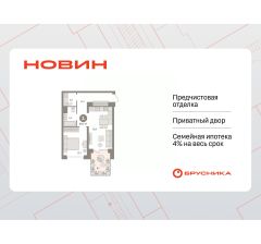 Квартира с кухней-гостиной и одной спальней в квартале "Новин". Особенности планировки: вид во двор, панорамное остекление, предчистовая отделка, терраса, постирочная.