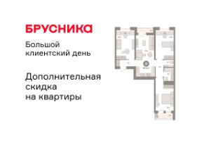 Квартира с кухней-гостиной и тремя спальнями в квартале "Новин". Особенности планировки: вид во двор, второй санузел, лоджия, окна на две стороны, постирочная, предчистовая отделка, разнесённые спальни, терраса на крыше.