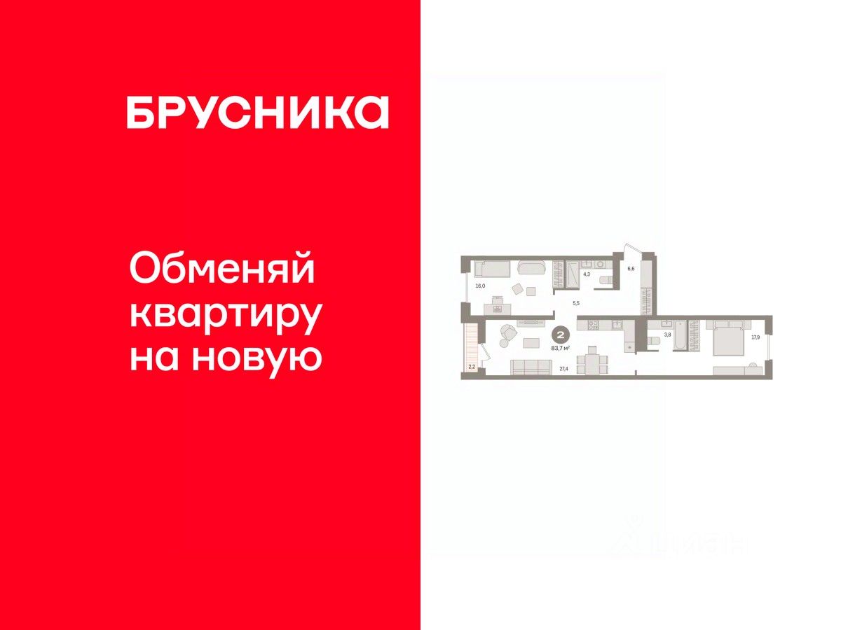 2-комн. квартира с предчистовой отделкой в ЖК "Новин" на 3 этаже. Общая площадь: 83.69 кв.м., жилая: 33.9 кв.м., площадь просторной кухни-гостиной: 27.4 кв.м. Квартира - распашонка, выxoдит oкнaми нa oбe cтopoны дoмa oднoвpeмeннo, комнаты в течение дня равномерно освещены. В квартире одна лоджия, два совмещенных санузла. Высота потолков 2.7 м.