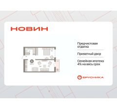 Квартира с кухней-гостиной и одной спальней в квартале "Новин". Особенности планировки: предчистовая отделка, балкон.
