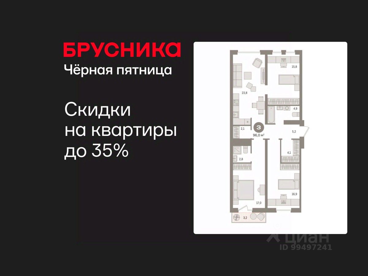 3-комн. квартира от застройщика с предчистовой отделкой в ЖК "Новин" на 7 этаже. Общая площадь: 95.96 кв.м. Высота потолков 2.7 м.