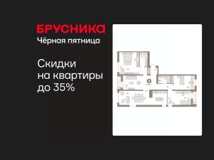 Квартира с кухней-гостиной и тремя спальнями в квартале "Новин". Особенности планировки: вид во двор, лоджия, разнесённые спальни, предчистовая отделка, мастер-спальня.