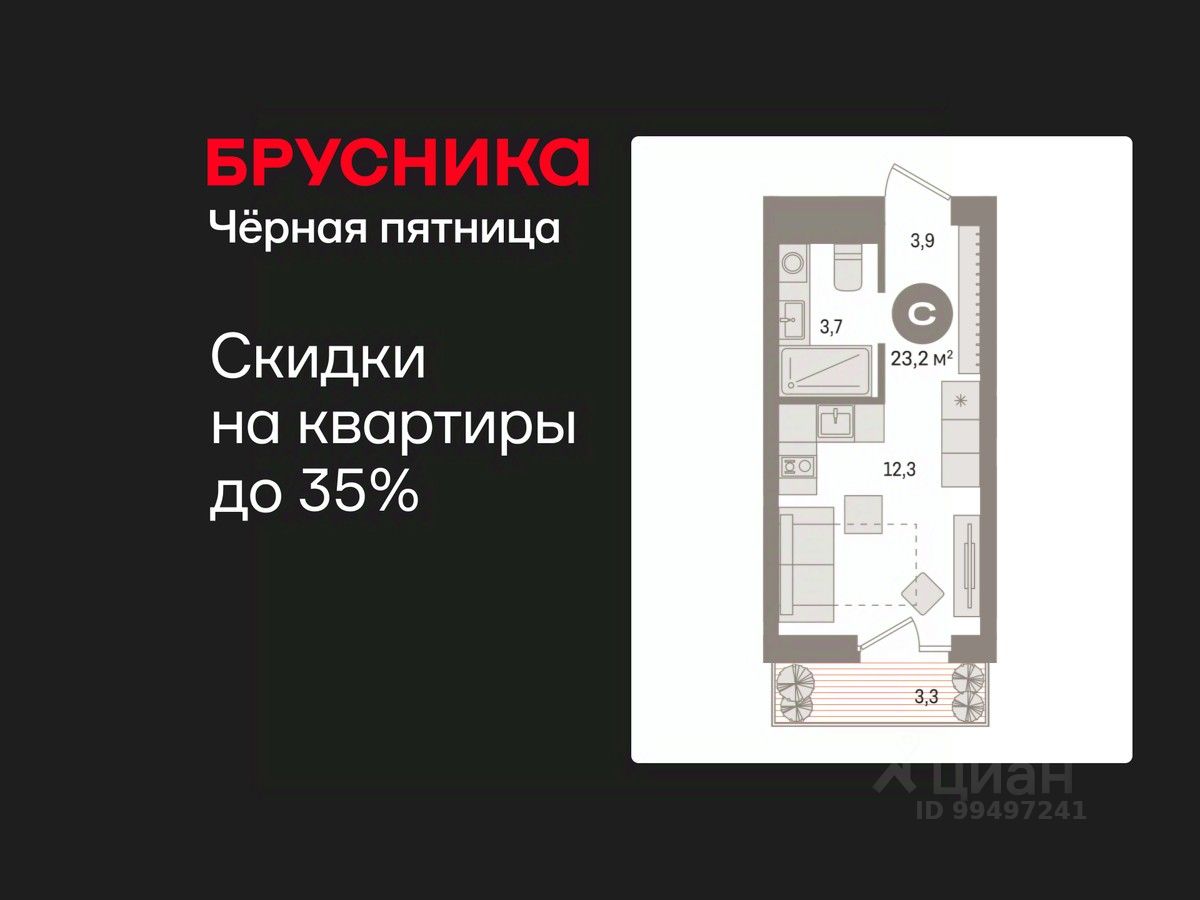Просторная 1-комн. студия с предчистовой отделкой в ЖК "Новин" на 4 этаже. Общая площадь: 23.16 кв.м., площадь гостиной 12.3 кв.м., из которых 5 кв.м. выделено под кухонную зону. Все окна выходят на одну сторону. В квартире один балкон, один совмещенный санузел. Высота потолков 2.7 м.