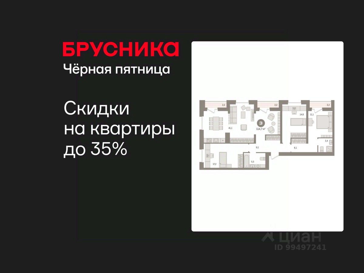 3-комн. квартира от застройщика с предчистовой отделкой в ЖК "Новин" на 6 этаже. Общая площадь: 114.75 кв.м. Высота потолков 2.7 м.