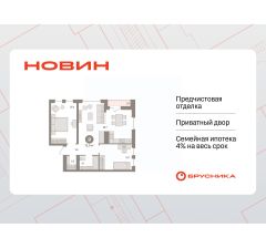Квартира с кухней-гостиной и двумя спальнями в квартале "Новин". Особенности планировки: гардеробная, лоджия, разнесённые спальни, предчистовая отделка.