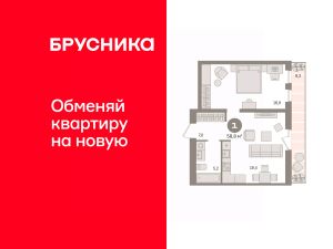 Квартира с кухней-гостиной и одной спальней в квартале "Новин". Особенности планировки: балкон, вид во двор, предчистовая отделка.