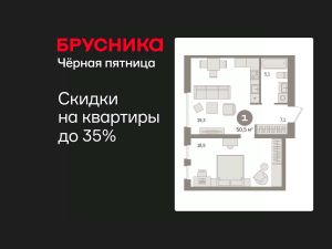 1-комн. квартира с предчистовой отделкой в ЖК "Новин" на 4 этаже. Общая площадь: 50.48 кв.м., жилая: 18.9 кв.м., площадь просторной кухни-гостиной: 19.3 кв.м. Все окна выходят на одну сторону. В квартире один совмещенный санузел. Высота потолков 2.7 м.
