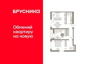 Квартира с кухней-гостиной и двумя спальнями в квартале "Новин". Особенности планировки: предчистовая отделка.